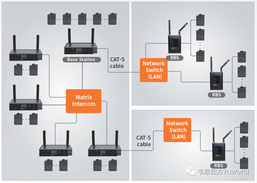 远程基站支持菊花链连接Daisy-chain,具备冗余备份系统解决方案 -