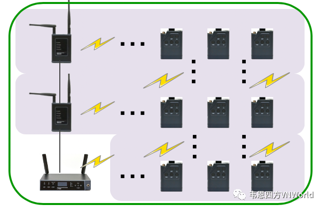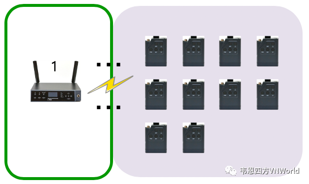 无线腰包可以在基站和各远程基站之间自动切换,也支持手动切换 -